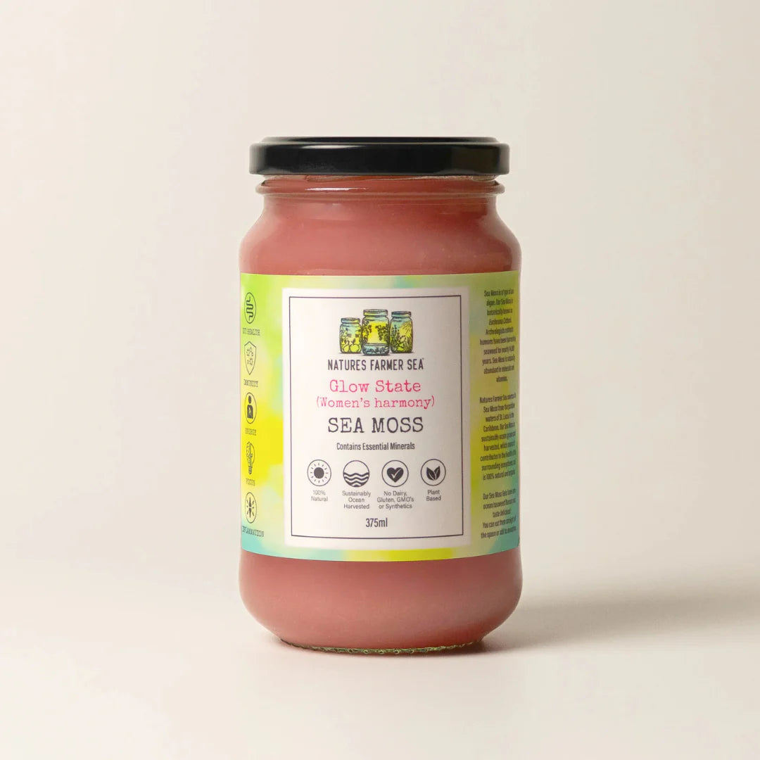 Our new Glow State Sea Moss gel is our signature Sea Moss blend designed to support female hormone health, gut wellness, radiant skin, and emotional clarity. Infused with powerful botanicals like Shatavari, Calendula, Hibiscus, Amla, Rosella and Lemon Peel, it’s the nourishing daily ritual your body has been waiting for.